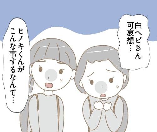 「HONKOWA」が「ほんとにあった怖い話」だった時代からそちら系の英才教育を受けた身としては、どうしても心霊系に意識がいきがちですが、それ抜きにしても白ヘビは可哀想で、そんな事をしたのがヒノキくんというのがまた衝撃でした。